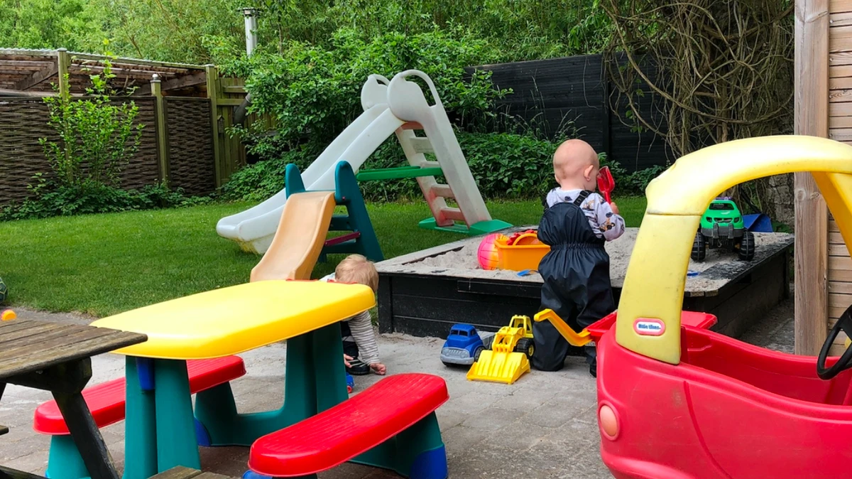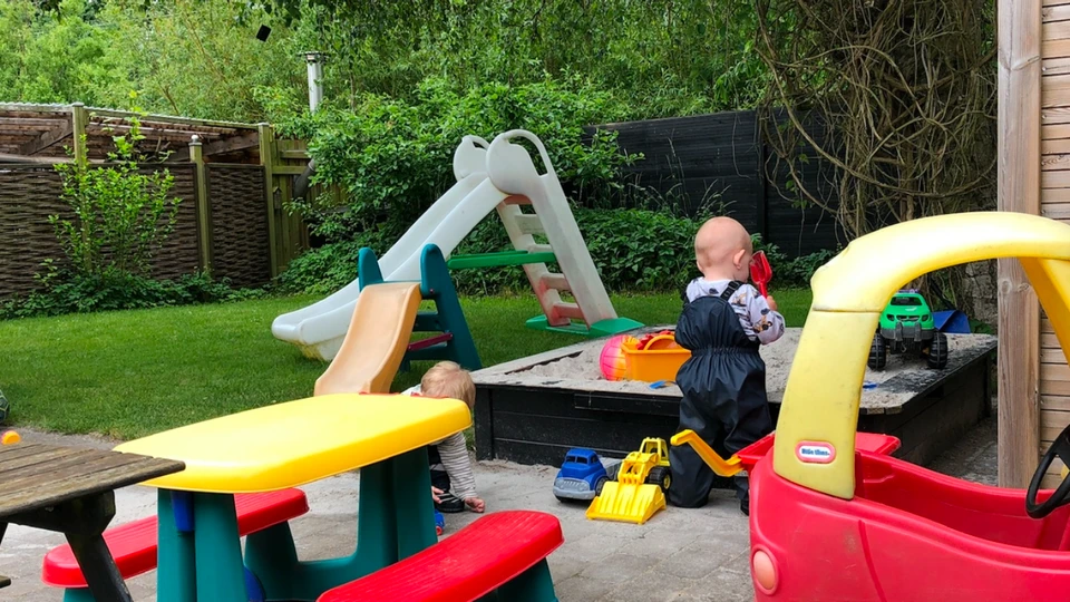 Jeg vægter naturen og udelivet højt i næsten alt slags vejr. I vores have har vi bl.a. en sandkasse, et legehus og plads til at køre på køretøjer.