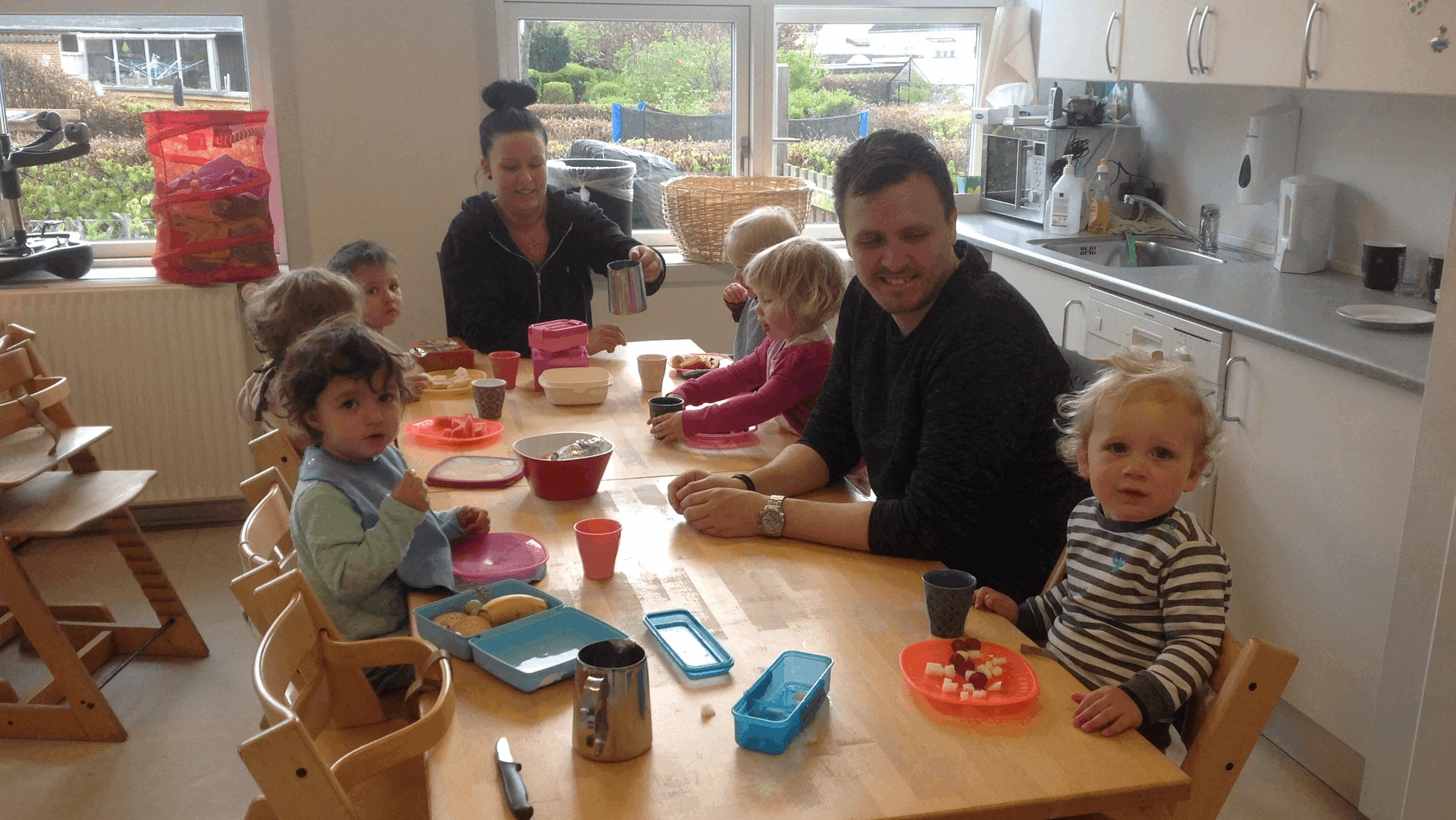 Kl. 9.00 spiser børnene deres medbragte formiddagsmad. Det kan være frugt, brød, grøntsager eller andet sundt.